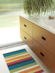 Don’t miss our new Chilewich rack just outside of our shop door! We’d admired Chilewich rugs at trade shows… spotted one just inside the front door at an historic Airbnb in Mendocino, CA… and lusted after them in online magazines like Design Milk, which raved about the “beautiful patterns and color ways they come in, the designs are so incredibly durable and easy to take care of.” The Chilewich collection was introduced in 2000 by New York designer Sandy Chilewich.