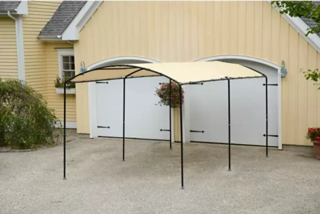 Look for waterproof shade sails or canopies that provide overhead coverage but remain “open air “below. I found this one from Shelter Logic.