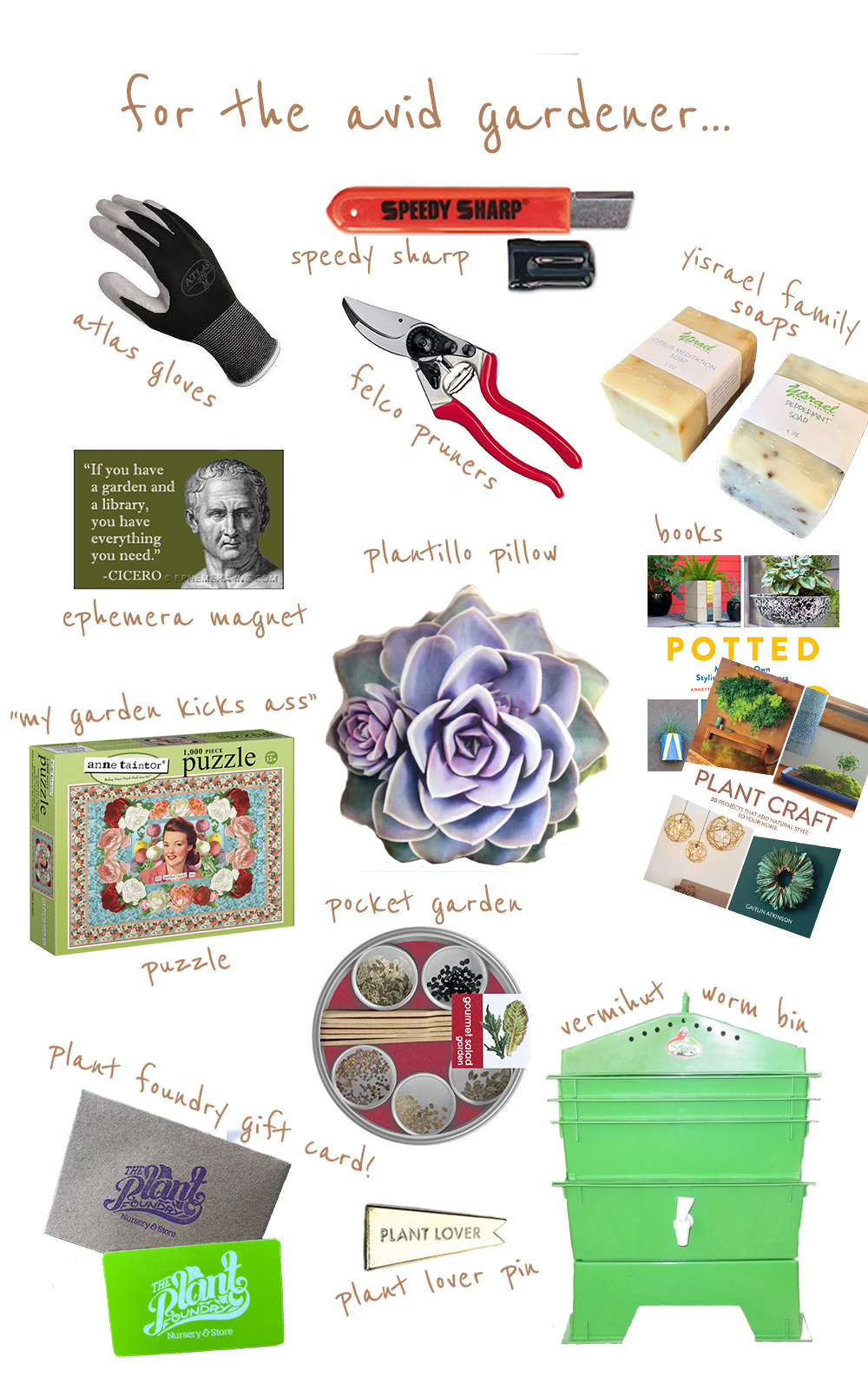 Here are some items we love. Perfect for holiday gifting, to gardeners and non-gardeners alike.